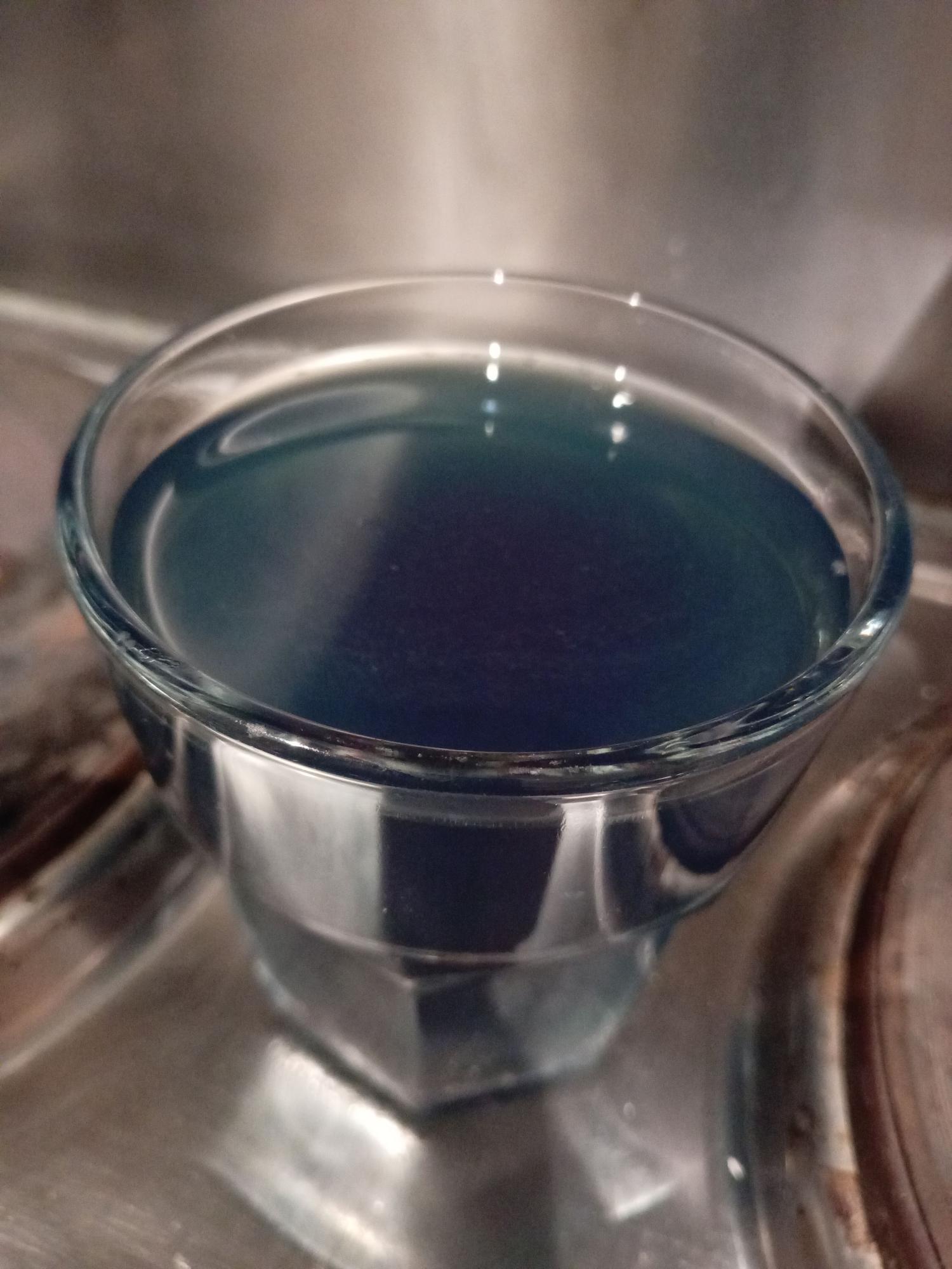 - Put the blue curaçao and the cherry vodka into a shot glass