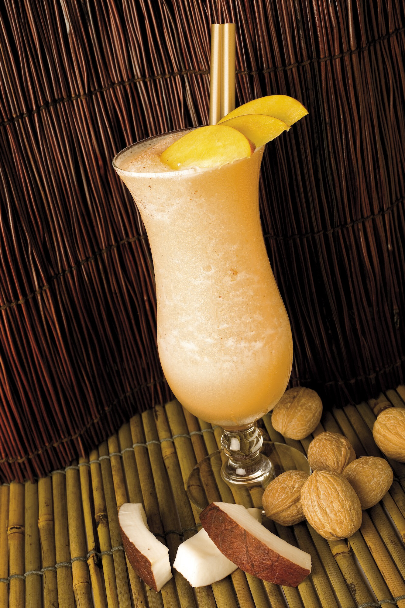 Walnut Peach piña colada is a playful twist on the tropical rum-and-coconut template, nudging the familiar piña colada profile into a more dessert-leaning, liqueur-driven direction. Rather than leaning on a long, storied backstory, this style reads as a modern variation: you keep the white rum as the clean base, then layer in fruit and nut liqueurs to make the drink feel richer and more aromatic while staying unmistakably “island” in character.