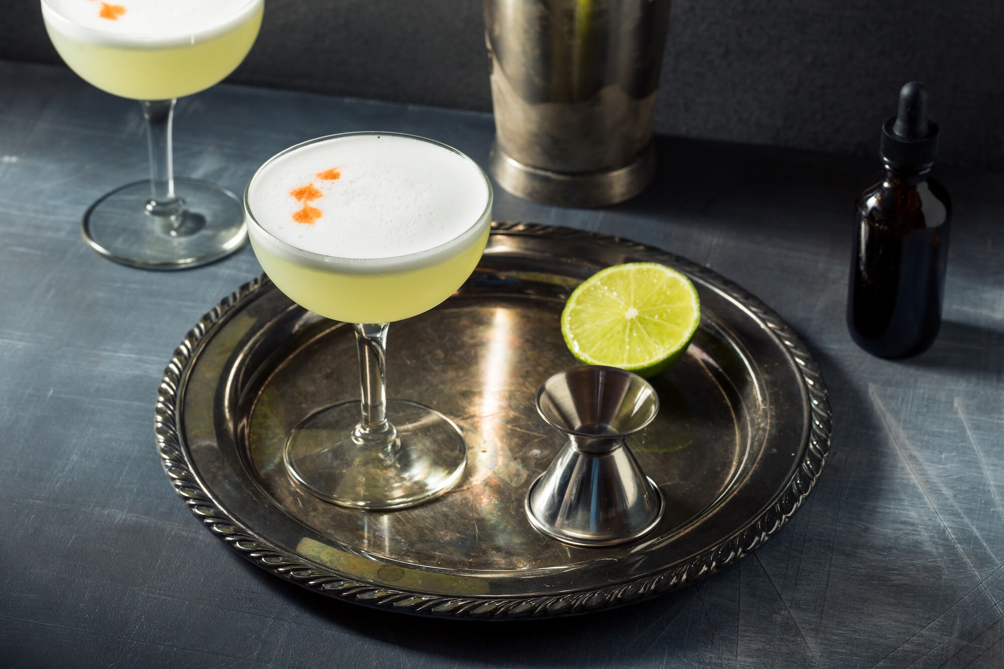 On the palate, lime juice brings a bright, sharp acidity that keeps the drink lifted, while sugar syrup smooths the edges and adds just enough sweetness to stop the citrus from feeling austere. The aromatic bitters dominate with their concentrated spice-and-herb intensity, turning the usual sour profile darker and more perfumed. Egg white ties it all together, softening the lime’s bite and giving the bitters a creamy, rounded canvas so the flavours linger rather than spike.
