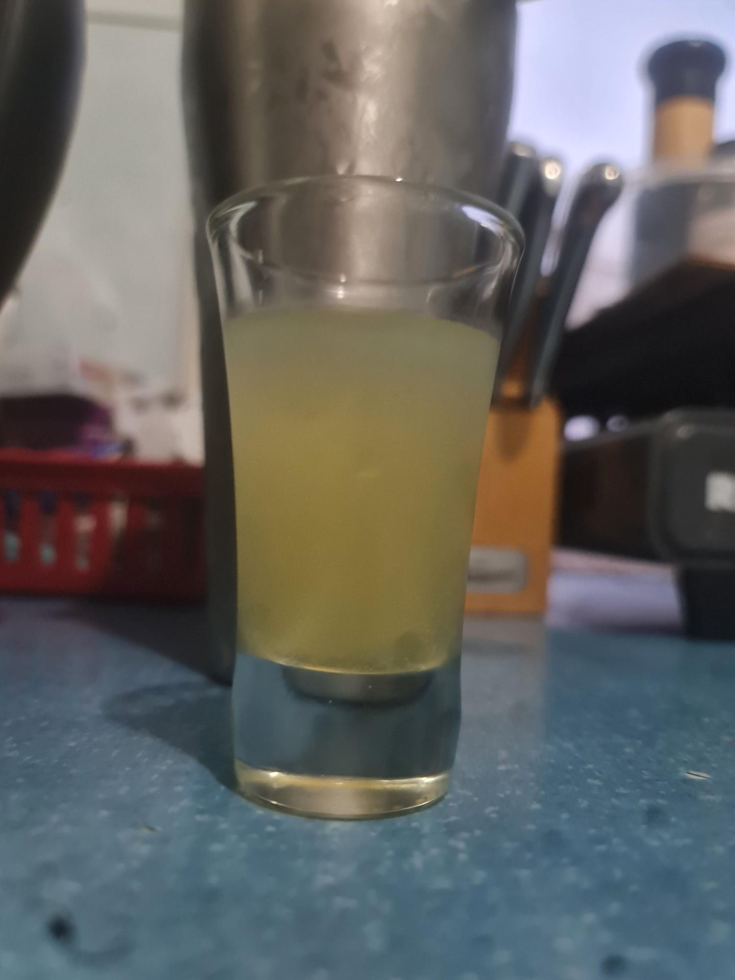 On the palate, Cointreau brings a clean orange sweetness with a lightly bitter edge, giving the shot its main body. A dash of lemon juice sharpens everything, cutting through the liqueur and making the citrus feel tighter and more vivid. The energy drink adds extra sweetness and a bright, fizzy-leaning lift, turning the orange-and-lemon combination into something more candied and high-energy.