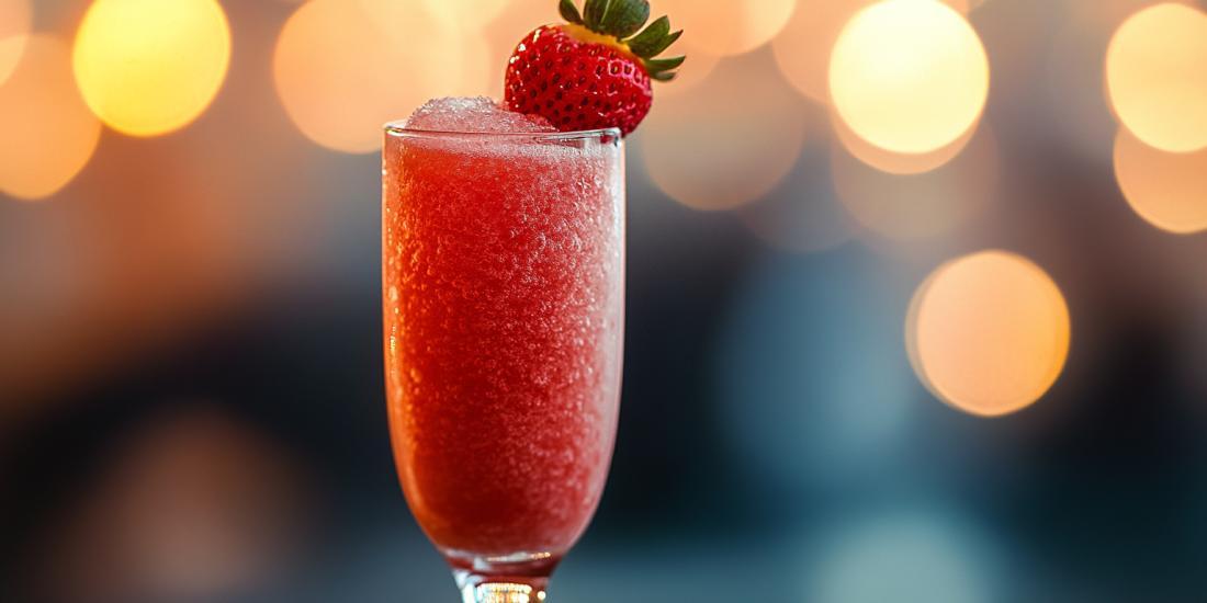 - Stir gently and serve garnished with a strawberry