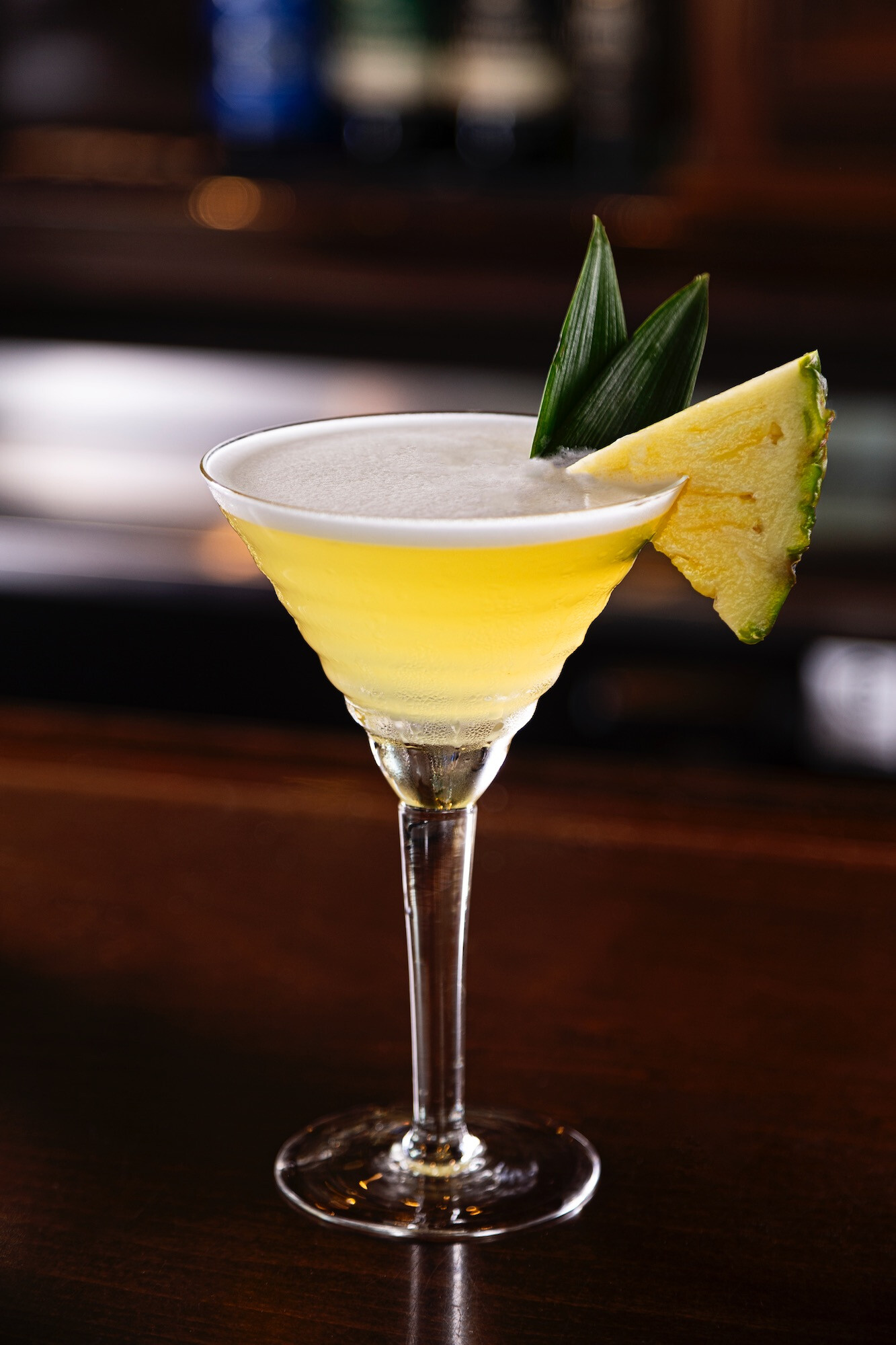 - White rum 45ml, Green Chartreuse 15ml, Coffee liqueur 15ml, Lime juice 15ml, Pineapple 2 wedges