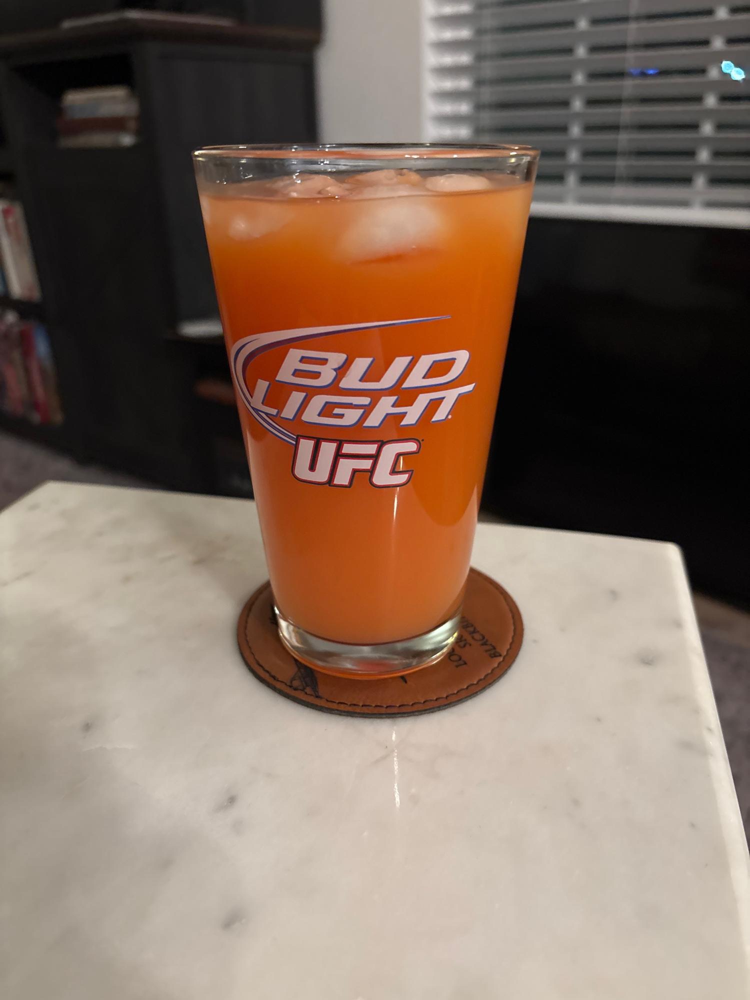 - Vodka 60ml, White rum 60ml, Suco de laranja Top up, Grenadine 30ml
