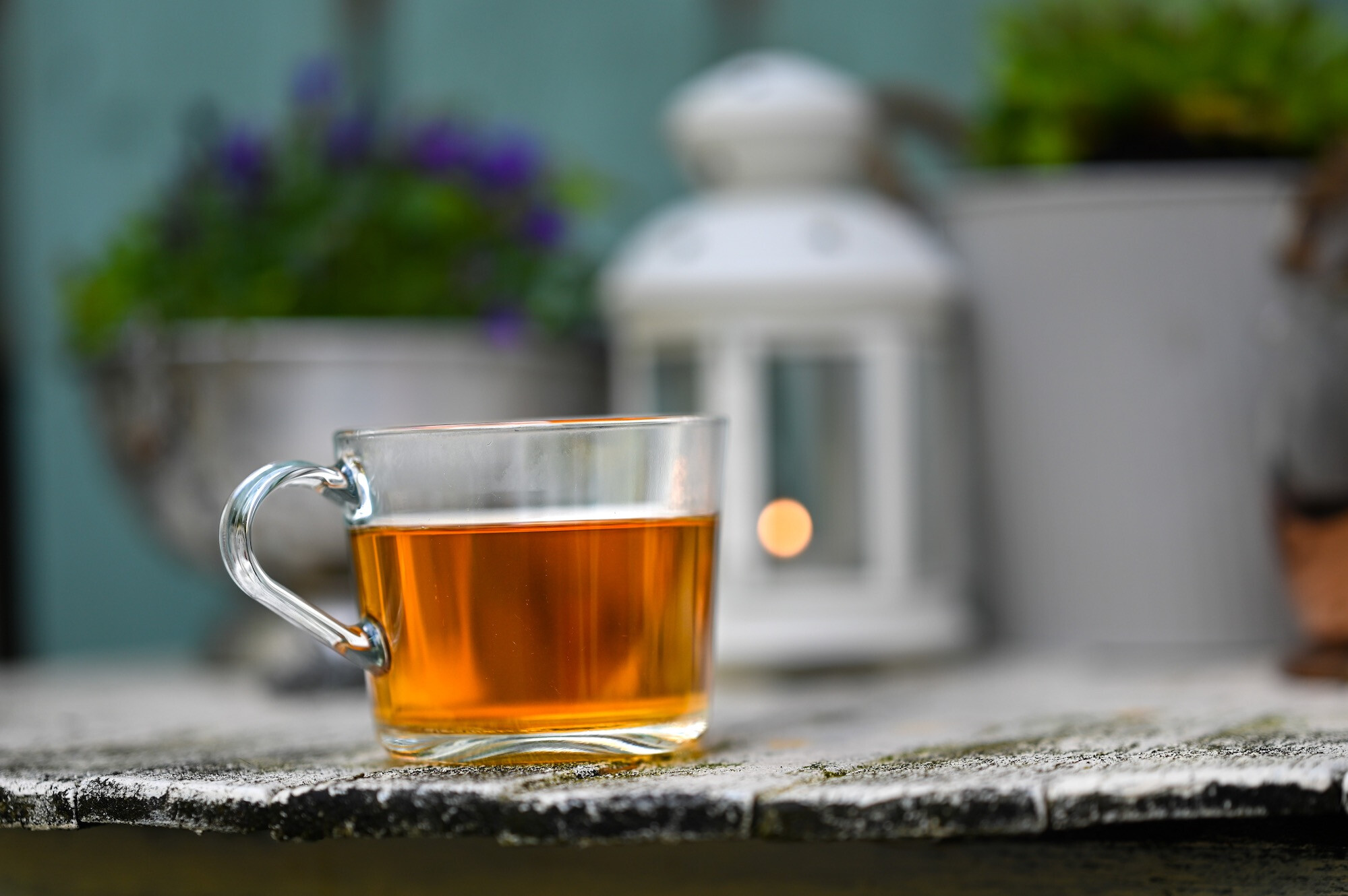 - Combine todos os ingredientes junto com 60ml/2 doses de água quente em um mixing glass