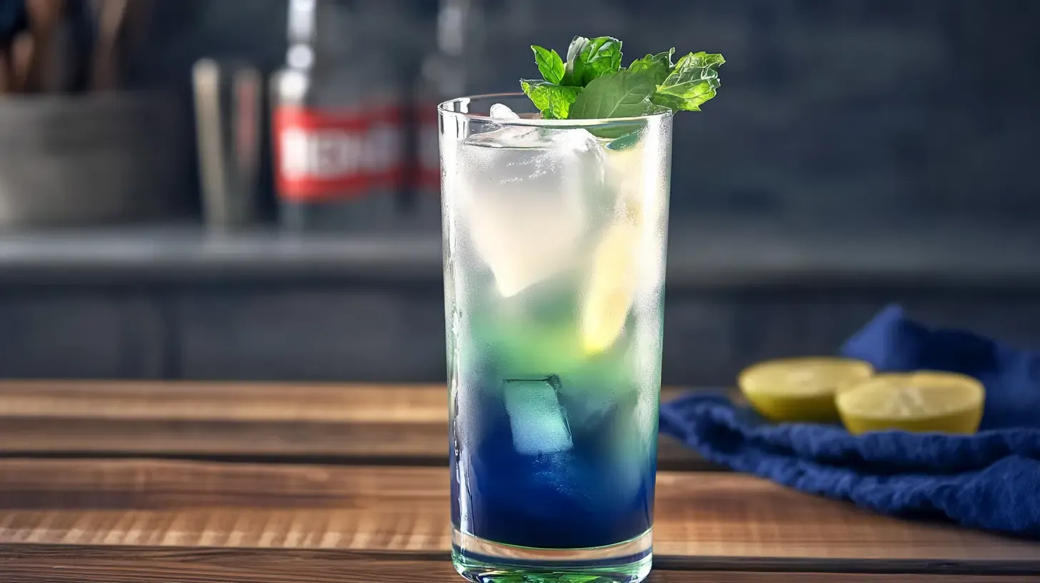 Você vai encontrar uma base ampla e limpa de vodka, gin e rum branco, com triple sec adicionando uma doçura laranja vibrante que une os destilados. O schnapps de pêssego traz uma nota frutada suave e doce, que suaviza as bordas, enquanto o blue curaçao acrescenta mais doçura cítrica e sua cor vívida característica. A bebida energética contribui com um impulso doce e marcante que amplifica a intensidade geral e mantém o final vibrante e refrescante.