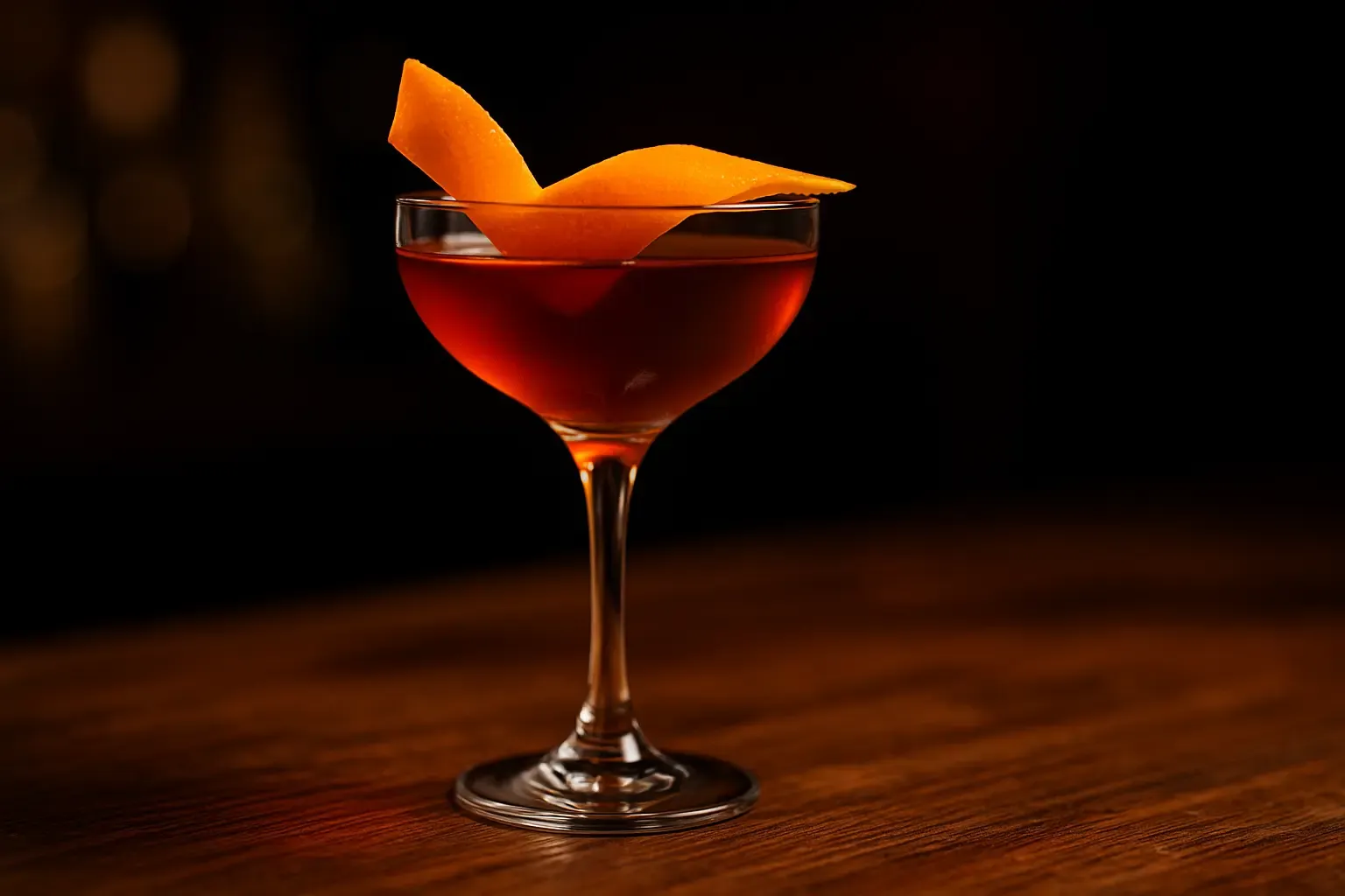 - Esprema os óleos de uma casca de laranja sobre a superfície do drink e decore com a casca